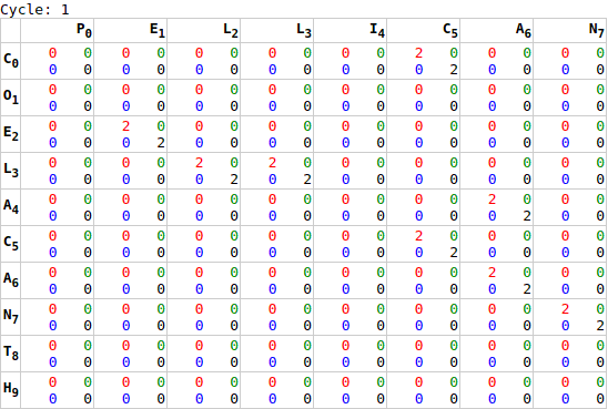 `.As noted earlier, it is not sufficient to execute this process once. While we are calculating every cell’s chain score, there is insufficient information for the last cell to complete its chain calculation until it’s neighbours have completed their calculation. To resolve this, we run the GPU processing multiple times: first calculating the worst-case number of cycles required [webgl.html:518]